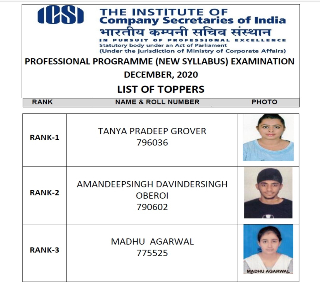 LIST OF RANK HOLDERS WHO HAVE PASSED ALL PAPERS OF PROFESSIONAL PROGRAMME(N/S)